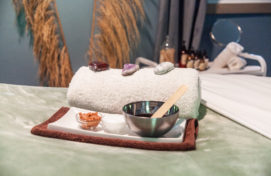 A sea scrub exfoliation, smoothing skin and removed with hot towels and finishing with a deep moisturize massage. This aids in promoting healthy circulation and smooth, soft skin.