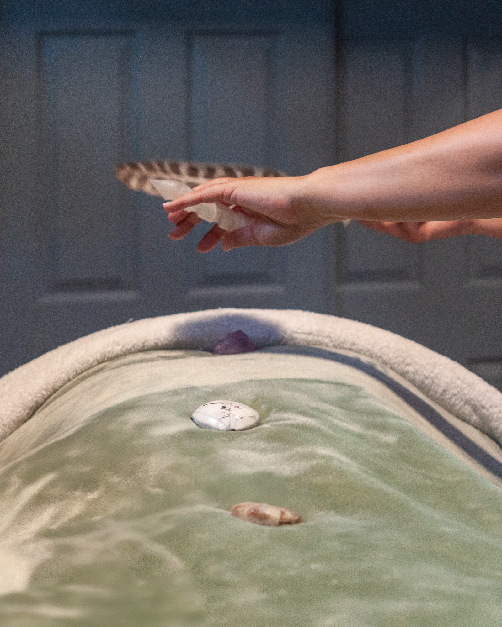 A combination of Reiki and Chakra balancing. Crystal placement to clear the chakras and sweep over the aura of the body to balance and ground the body’s energy. Tibetan singing bowls to promote relaxation and create a meditative state while aligning the chakras at a deeper level. Complete with Reiki to alleviate stress, anxiety, ease pain, improve quality of life as well as improve sleep. Spiritually healing.